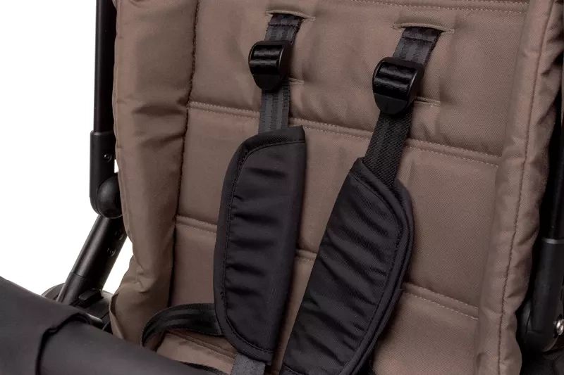 O bezpieczeństwo dziecka dbają 5-punktowe pasy z miękkimi naramiennikami oraz odpinany pałąk, który ułatwia wkładanie i wyjmowanie malucha. Powiększana budka skutecznie chroni przed słońcem, wiatrem i deszczem, a wbudowane okienko z odblaskową siatką wentylacyjną zapewnia odpowiednią cyrkulację powietrza oraz umożliwia obserwację dziecka podczas spacerów.
