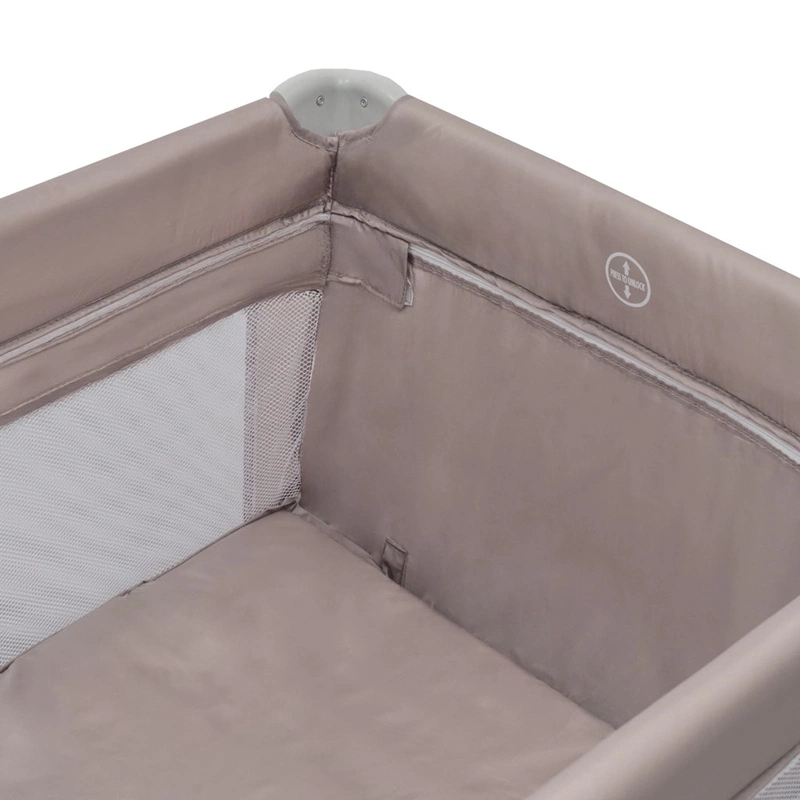 • Boczne ścianki z siatki – wentylacja i kontakt wzrokowy z dzieckiem