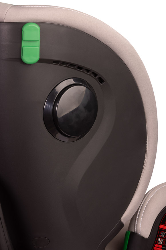 Może być zamontowany w samochodzie za pomocą zaczepów ISOFIX i top-tether lub za pomocą zaczepów ISOFIX i pasów samochodowych. Fotelik został wyposażony w zintegrowany przycisk odpowiadający jednocześnie za regulację pochylenia i obracanie fotelika o 360 stopni, dzięki temu szybko i wygodnie można zabezpieczyć dziecko przed podróżą.