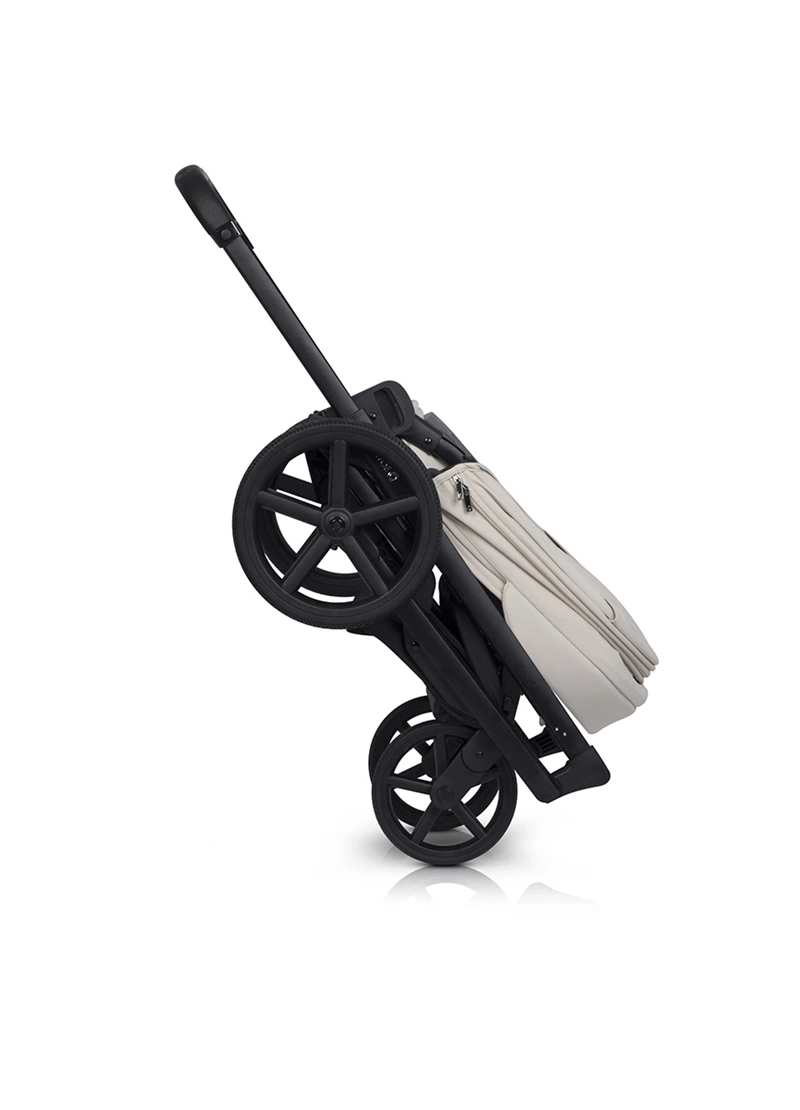 Wózek składa się w prosty sposób za pomocą jednej ręki, niezależnie od tego, czy siedzisko jest zamontowane przodem, czy tyłem do kierunku jazdy. Po złożeniu można go wygodnie przechowywać lub transportować jak walizkę.