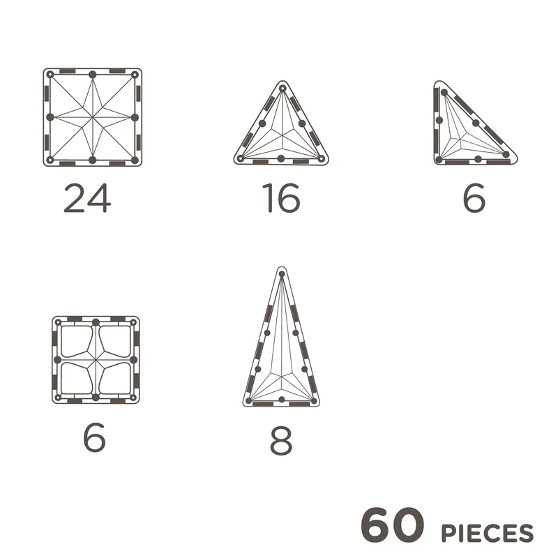 • Cleverclixx Original Intense Pack – 60 magnetycznych płytek w intensywnych kolorach. Idealny zestaw startowy do kreatywnej zabawy i nauki metodą STEAM.