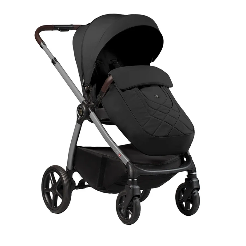 Dzięki możliwości regulacji oparcia, podnóżka i rączki, Flux dopasowuje się zarówno do potrzeb dziecka, jak i rodzica. Zastosowany system dwukierunkowego montażu DADA PRAMS pozwala na wpięcie gondoli, budki lub fotelika przodem albo tyłem do kierunku jazdy.