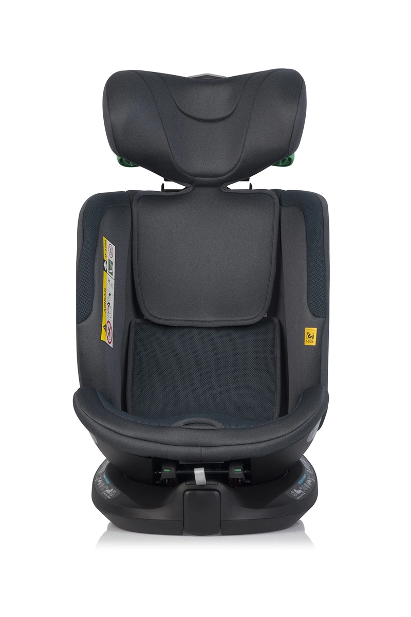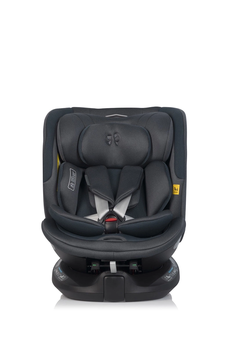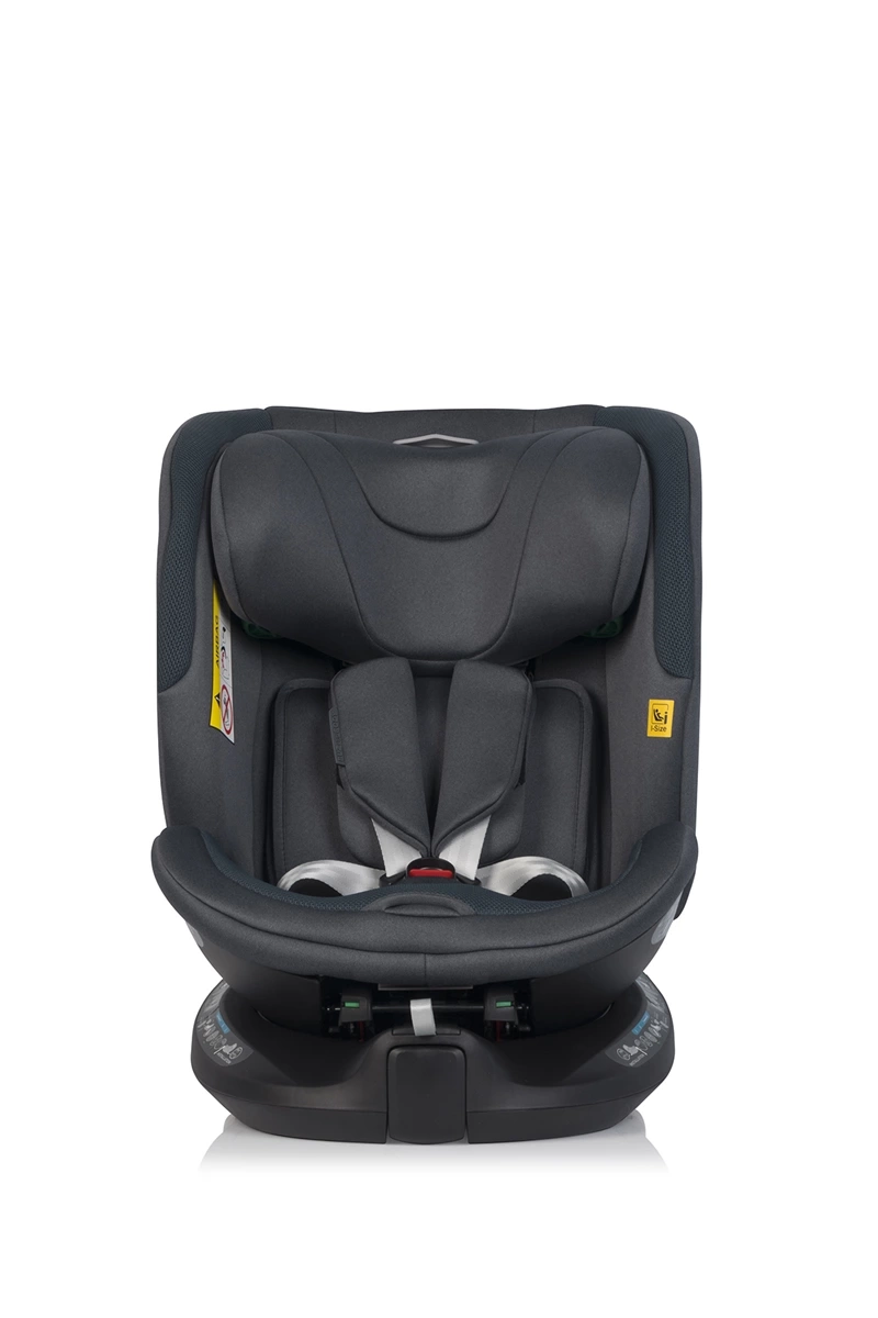Fotelik oferuje możliwość obrotu przodem, tyłem lub bokiem do kierunku jazdy, co znacznie ułatwia usadzanie dziecka oraz sprawdza się podczas postoju.