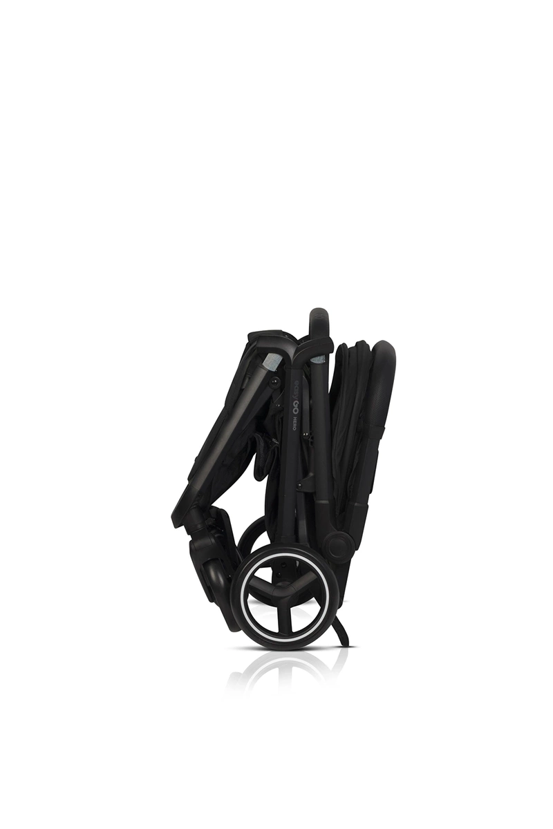 EasyGo Hero wyposażony jest w innowacyjny system automatycznego składania DUAL FOLD, który umożliwia złożenie wózka do kompaktowego rozmiaru w zaledwie kilka sekund. Wystarczy odblokować mechanizm na rączce, a wózek samoczynnie się złoży i stanie w pozycji pionowej. Wbudowany uchwyt w formie barierki ułatwia przenoszenie, a niska waga (zaledwie 7,9 kg) sprawia, że Hero bez problemu wniesiesz po schodach czy spakujesz do bagażnika.