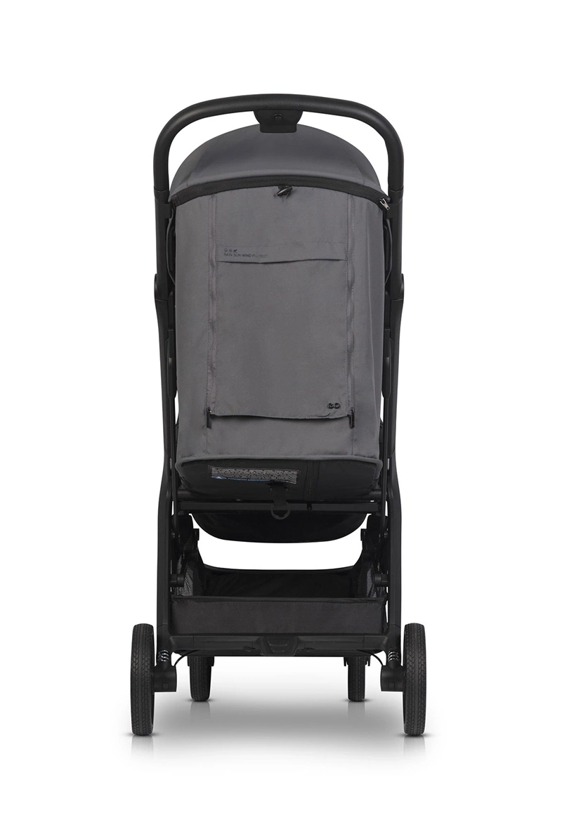 Budka została zaprojektowana tak, by skutecznie chronić przed słońcem i wiatrem. Posiada dwie dodatkowe sekcje, w tym rozpinaną, która pozwala mocniej pochylić daszek. Zakończona jest podwójnym daszkiem, a w tylnej części znajduje się okienko do podglądania dziecka oraz duży panel wentylacyjny z siateczką. Dodatkowa kieszonka umożliwia przechowywanie drobiazgów.