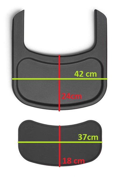 Tackę można odczepić i umieścić na uchwycie z tyłu krzesełka – zawsze pod ręką i bez zajmowania dodatkowego miejsca.