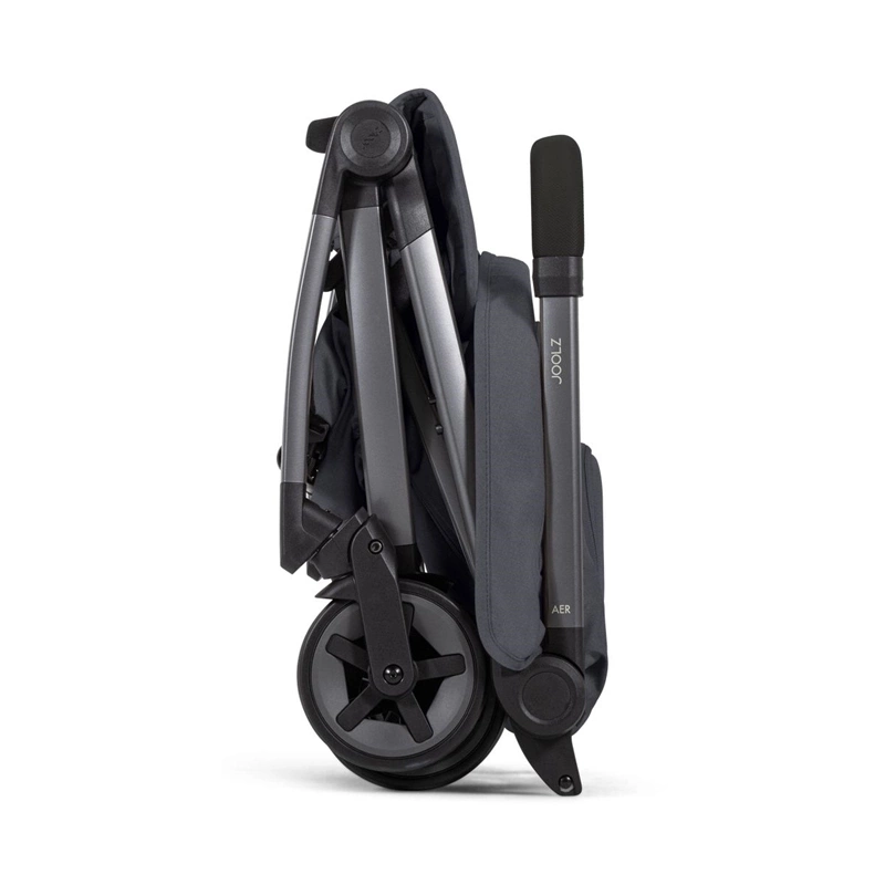 Z wagą zaledwie 6,5 kg Joolz Aer2 jest wyjątkowo łatwy do przenoszenia – także dzięki wbudowanemu paskowi na ramię. Wózek składa się błyskawicznie jedną ręką w ciągu sekundy i po złożeniu samodzielnie stoi, zajmując minimalną ilość miejsca: 44 x 55 x 23,5 cm.