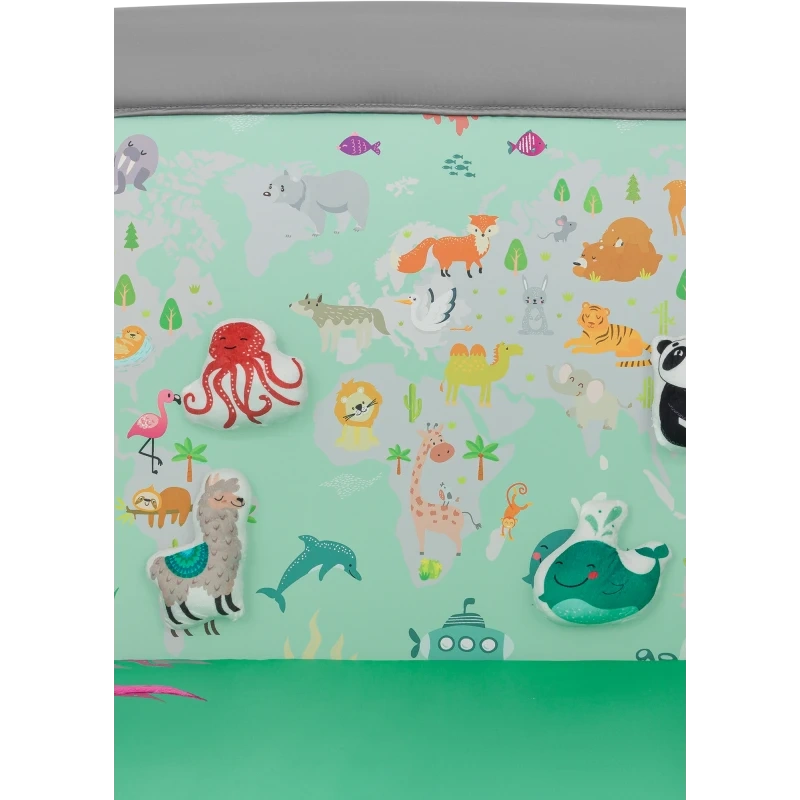 Kojec Mille został zaprojektowany tak, aby zapewnić dziecku bezpieczną przestrzeń do zabawy i rozwoju. Wbudowana mata edukacyjna oraz zabawki na rzepy zapewniają samodzielną zabawę i rozwój wyobraźni. Kolorowe obrazki ze zwierzętami z całego świata oraz materac z materiałem 3D wspierają rozwój sensoryczny dziecka, tworząc przyjazną i bezpieczną przestrzeń.