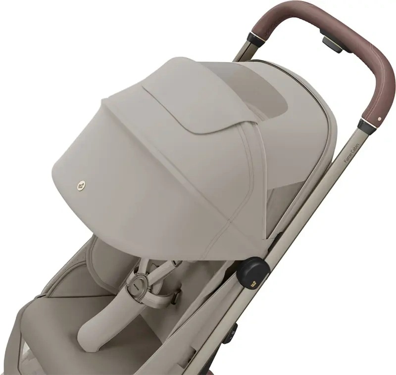 Rozkładany daszek z filtrem UV chroni dziecko przed słońcem, wiatrem i lekkim deszczem. Okienko wentylacyjne poprawia przepływ powietrza i umożliwia szybkie spojrzenie na dziecko.