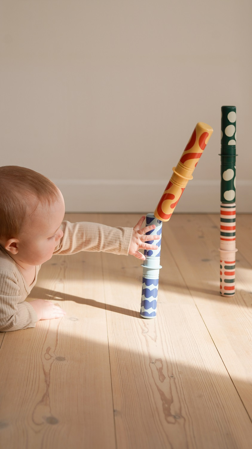 Zestaw pięciu kołków-grzechotek MODU rozszerza możliwości budowania i zabawy w całym systemie MODU. Każdy kołek ma własny dźwięk i wzór, dzięki czemu wspiera stymulację sensoryczną, motorykę małą oraz kreatywną zabawę od pierwszych miesięcy życia.