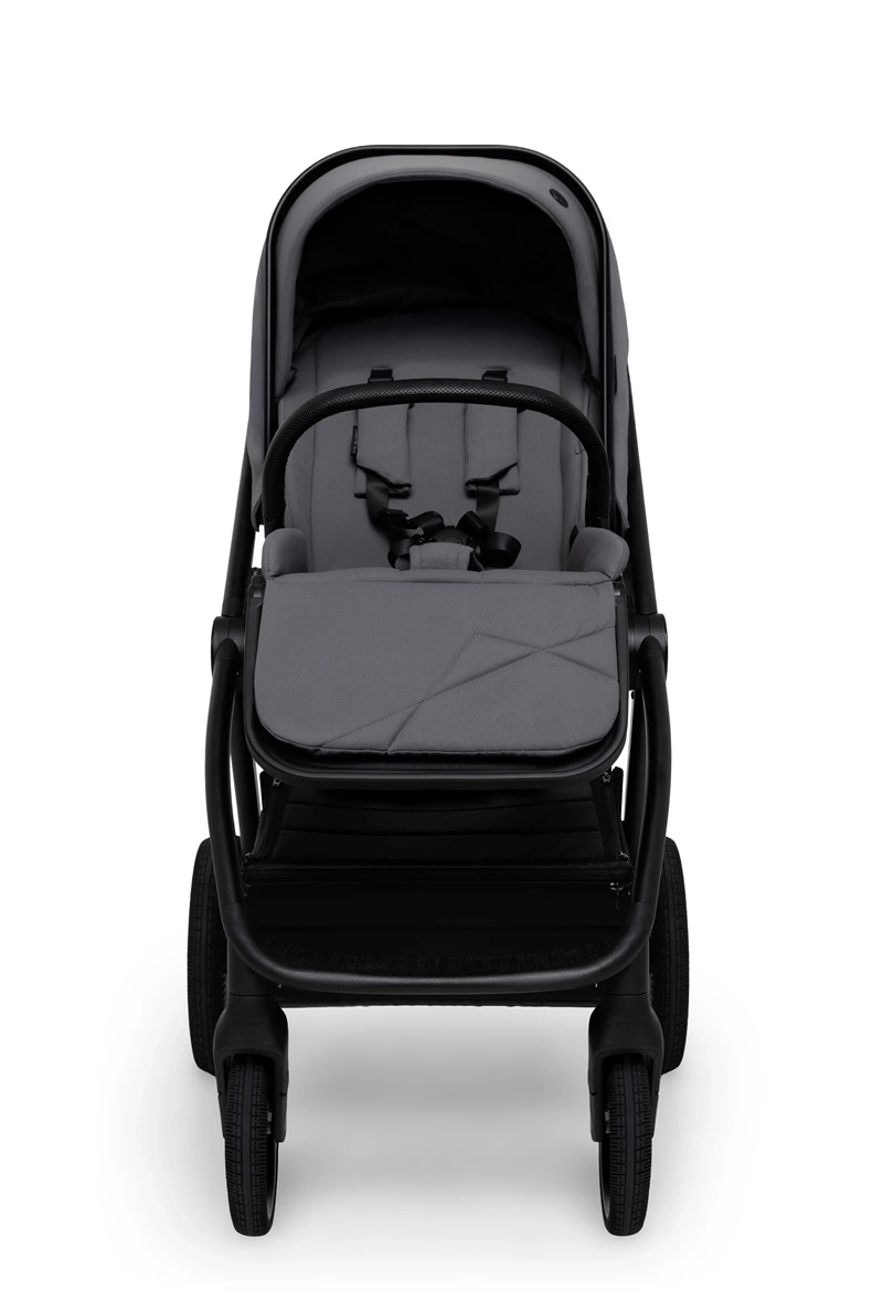 Tapicerka wykonana jest z hydrofobowej tkaniny, która nie wchłania wilgoci i jest łatwa w czyszczeniu. Filtr UPF 50+ chroni przed promieniami UV, a nowa struktura materiału z eleganckim tłoczeniem i metalowym pinem podkreśla charakter premium wózka.