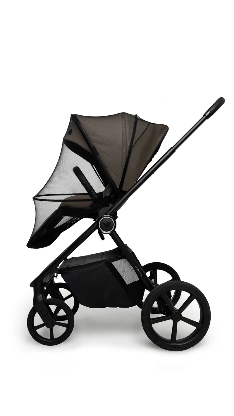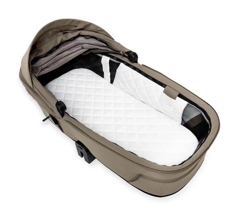 Pojemny, zamykany kosz o ładowności do 10 kg daje łatwy dostęp z obu stron. W zestawie znajduje się uniwersalna moskitiera pasująca do gondoli i spacerówki.