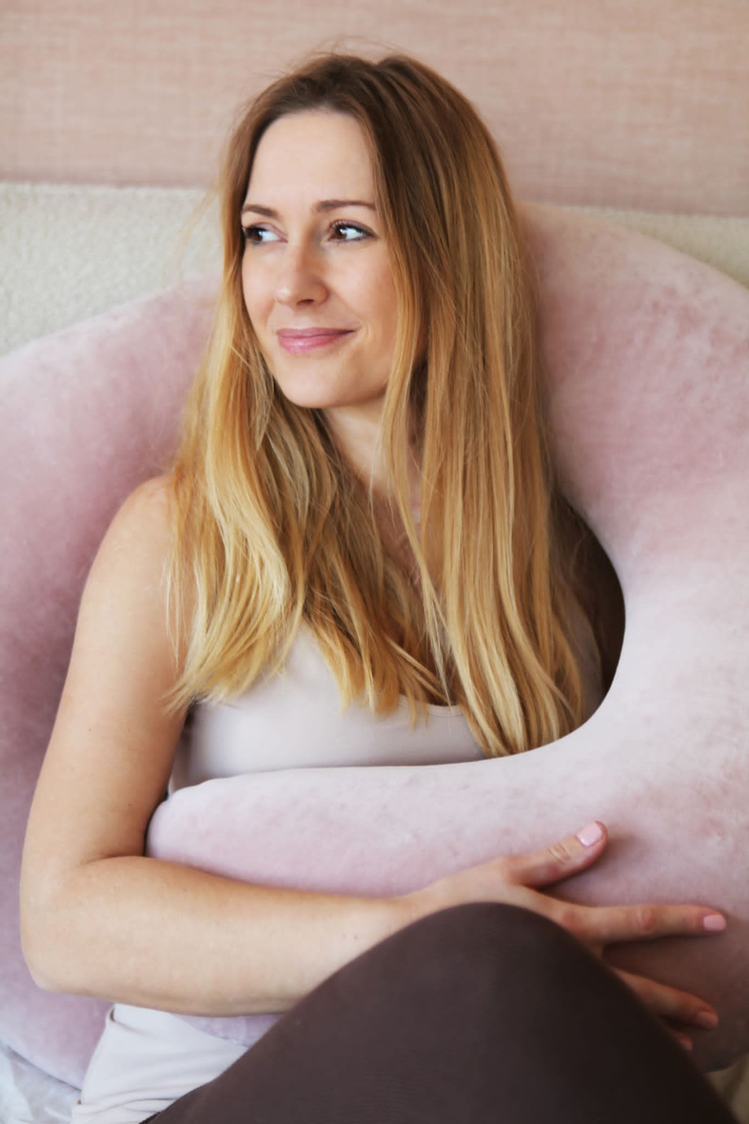 Poduszka pomaga w przyjęciu pozycji na lewym boku – rekomendowanej przez ginekologów ze względu na lepszy dopływ tlenu do dziecka.
