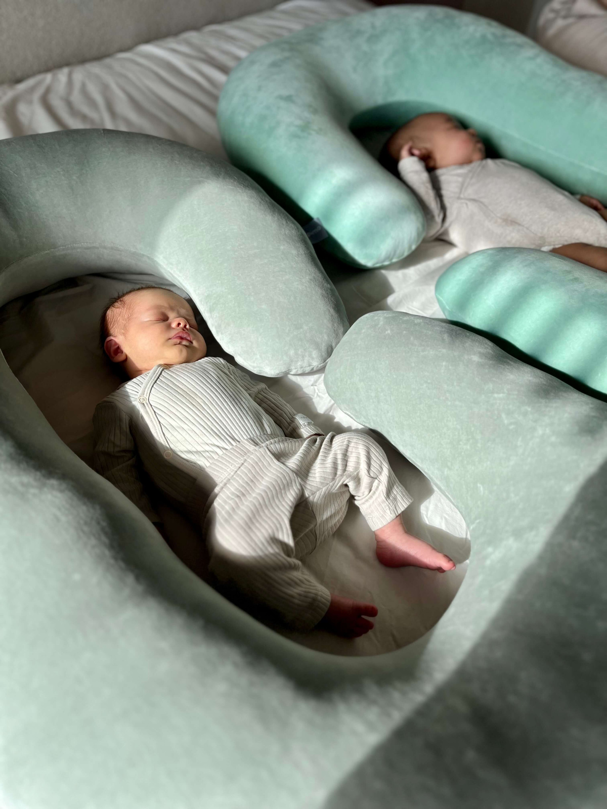 Kształt litery C pozwala na ułożenie ciała w idealnej pozycji do spania na boku – jednej z najbezpieczniejszych i najzdrowszych w ciąży: