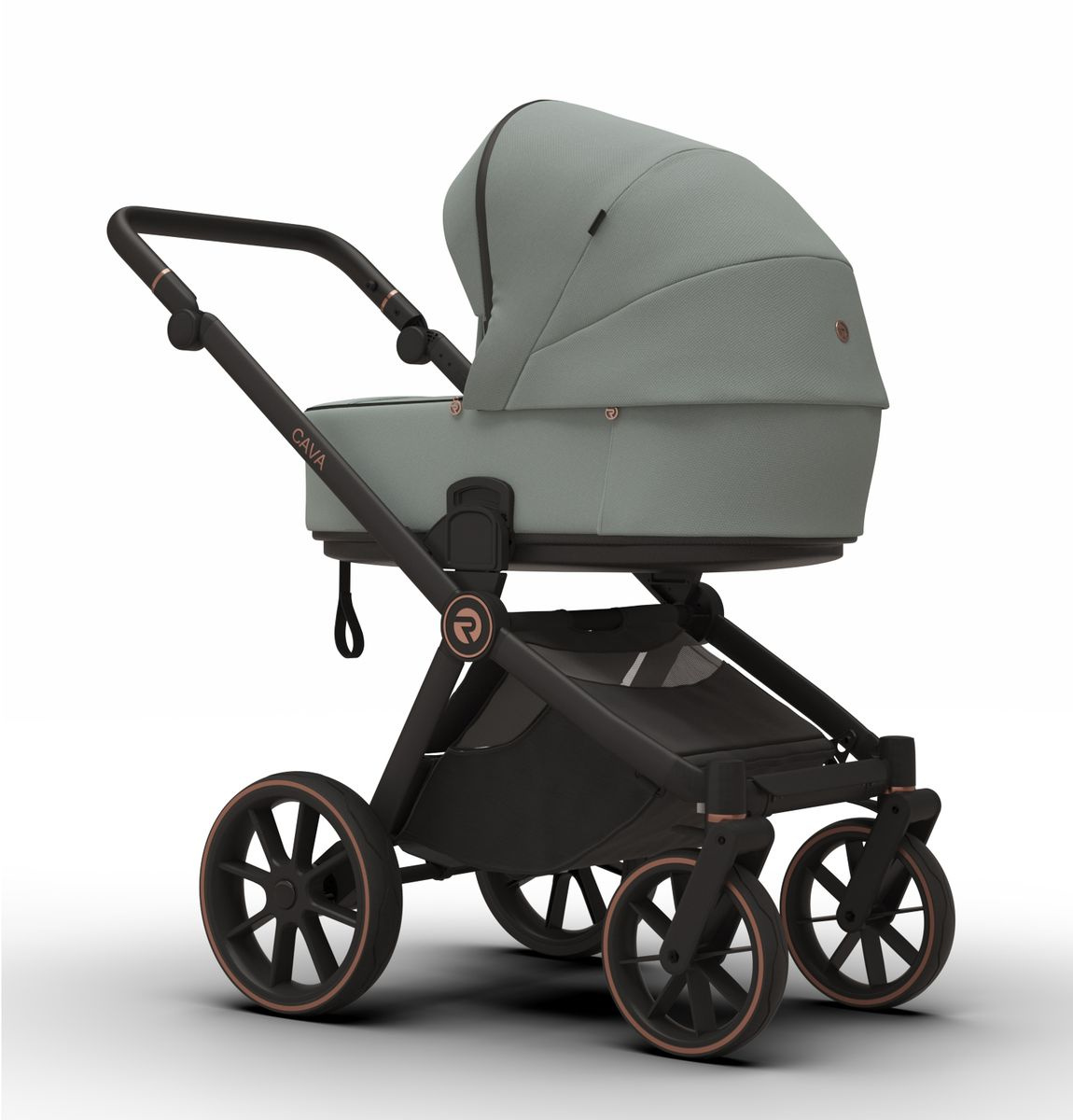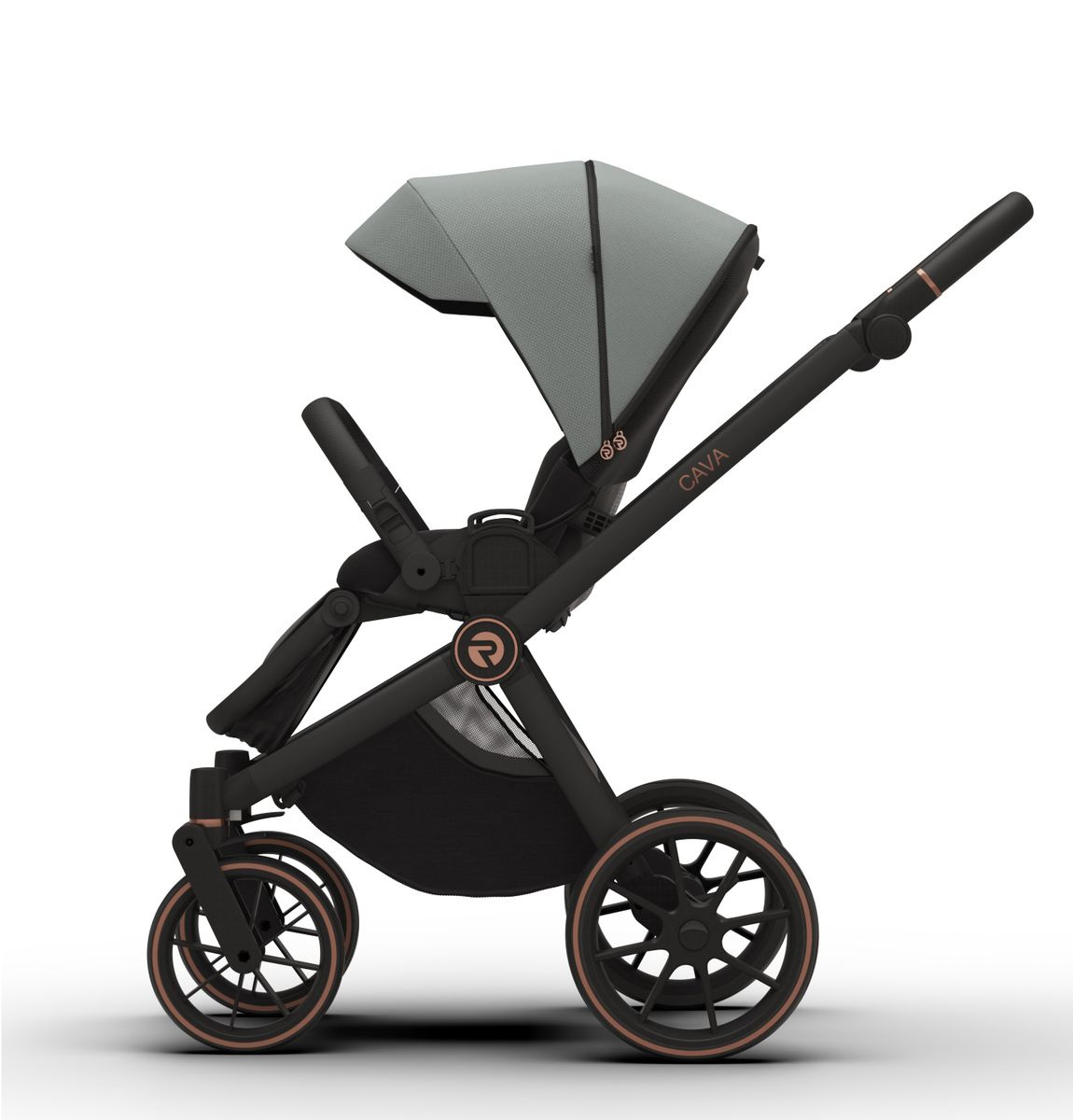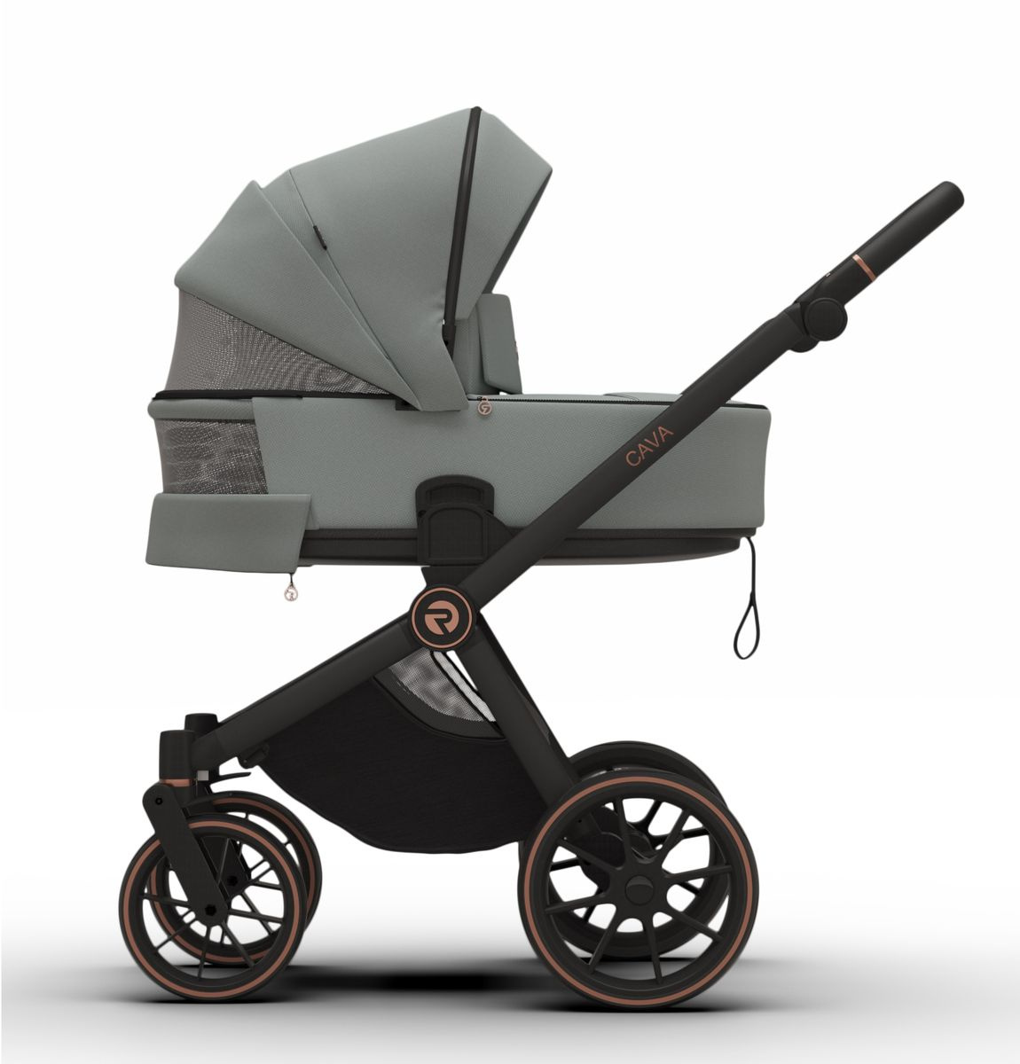 Model CAVA dostępny jest w dwóch liniach kolorystycznych, które połączono z eleganckim i nowoczesnym designem. Zewnętrzne elementy tapicerki wykonane zostały z modnej tkaniny 3D z impregnacją, zapewniającą odporność na wodę oraz filtr UV50+, chroniący dziecko przed szkodliwym promieniowaniem. W zestawie z wózkiem otrzymujesz również praktyczne akcesoria, takie jak duża torba, pokrowiec na zimę, folia przeciwdeszczowa, moskitiera i kosz mocowany do stelaża wózka.