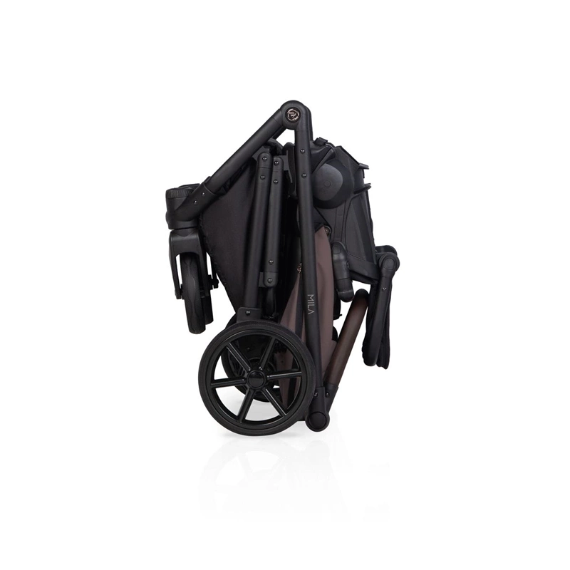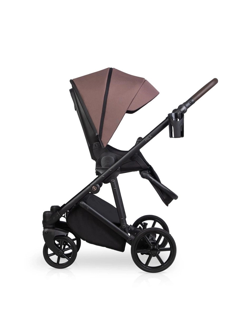 MILA wyróżnia się kompaktową konstrukcją dzięki zastosowaniu mniejszych kół, regulowanej rączki (także obrotowej o 180°) oraz możliwości składania do wolnostojącej, niewielkiej formy. Idealna dla niższych rodziców i aktywnych rodzin.