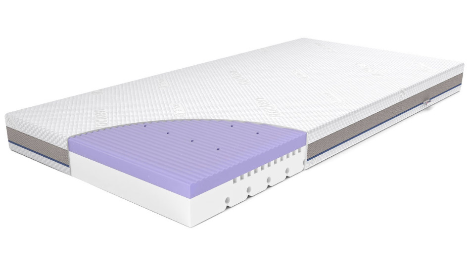 Wysokoelastyczna pianka VitaRest® HR 35 o wysokiej gęstości zapewnia trwałość i sprężystość, redukując wgniecenia i uciski na kręgosłup. Strona H2 jest antybakteryjna i antyalergiczna, a pianka T25 na stronie H3 skutecznie odprowadza wilgoć.