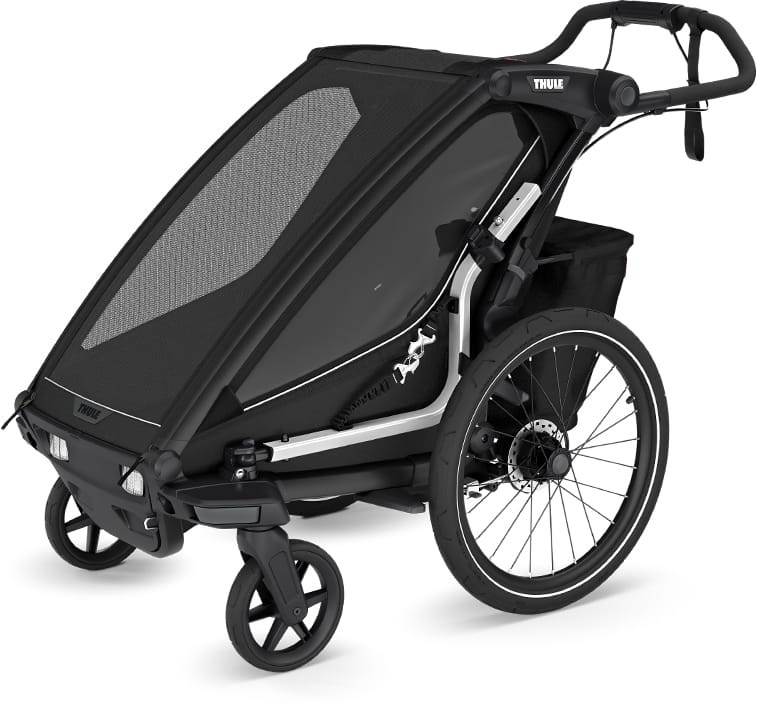 Thule Chariot Sport oferuje 4 aktywności: jazdę na rowerze, jogging, spacery i jazdę na nartach (zestawy do joggingu i jazdy na nartach dostępne osobno).