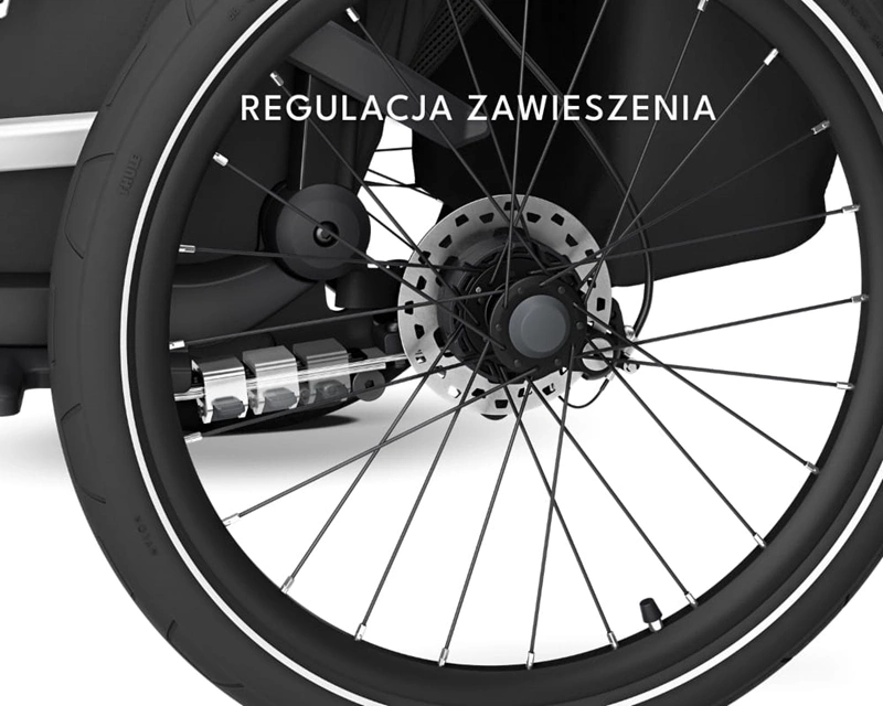 Regulowane zawieszenie pozwala dostosować amortyzację do potrzeb rosnącego dziecka lub przewożenia cięższych przedmiotów.