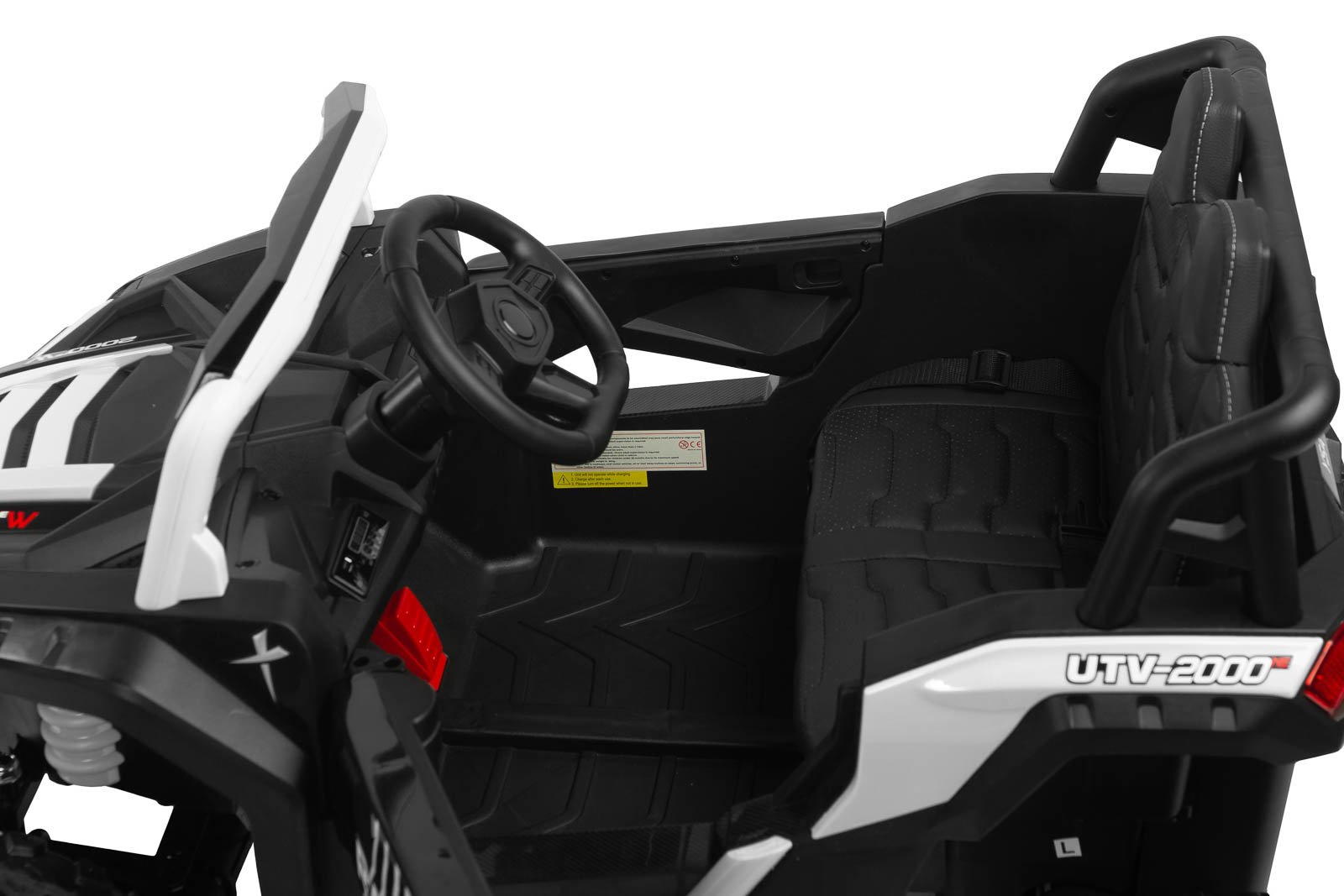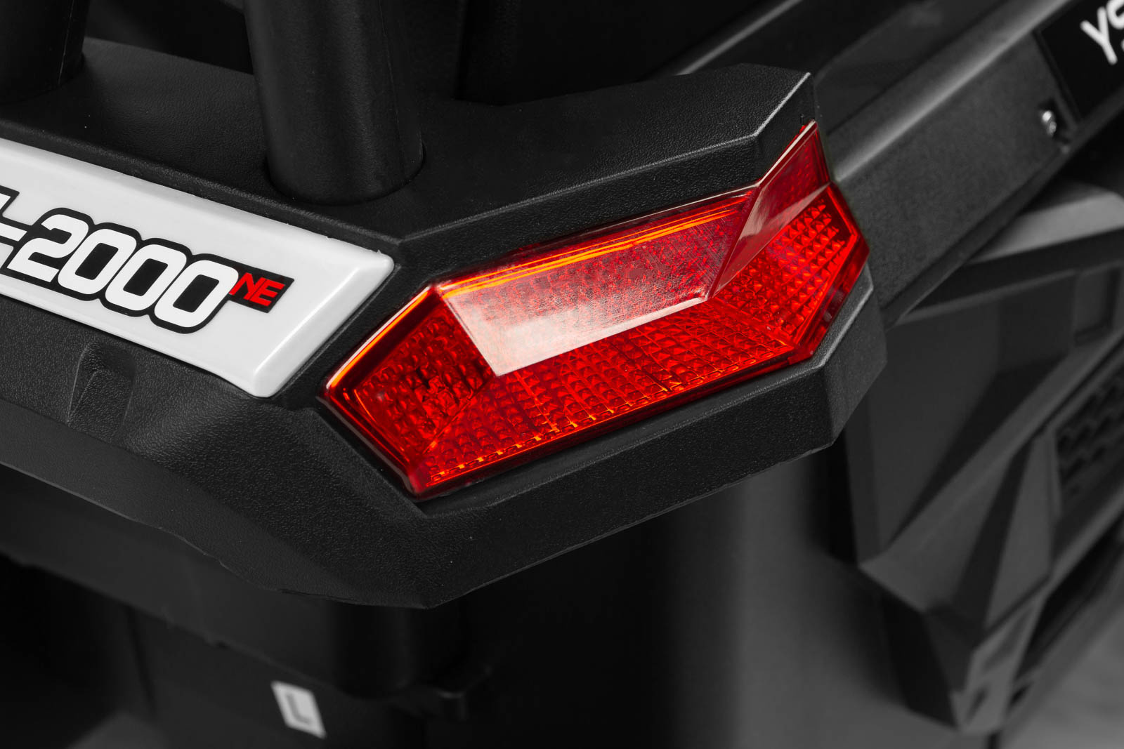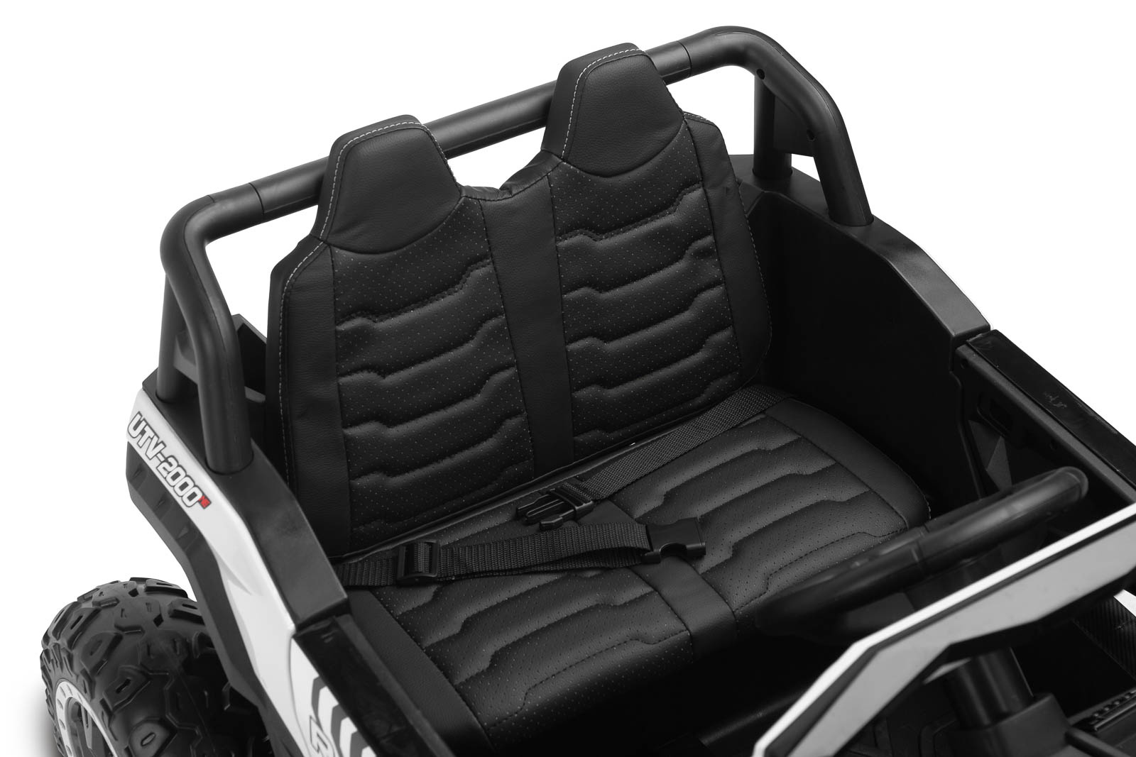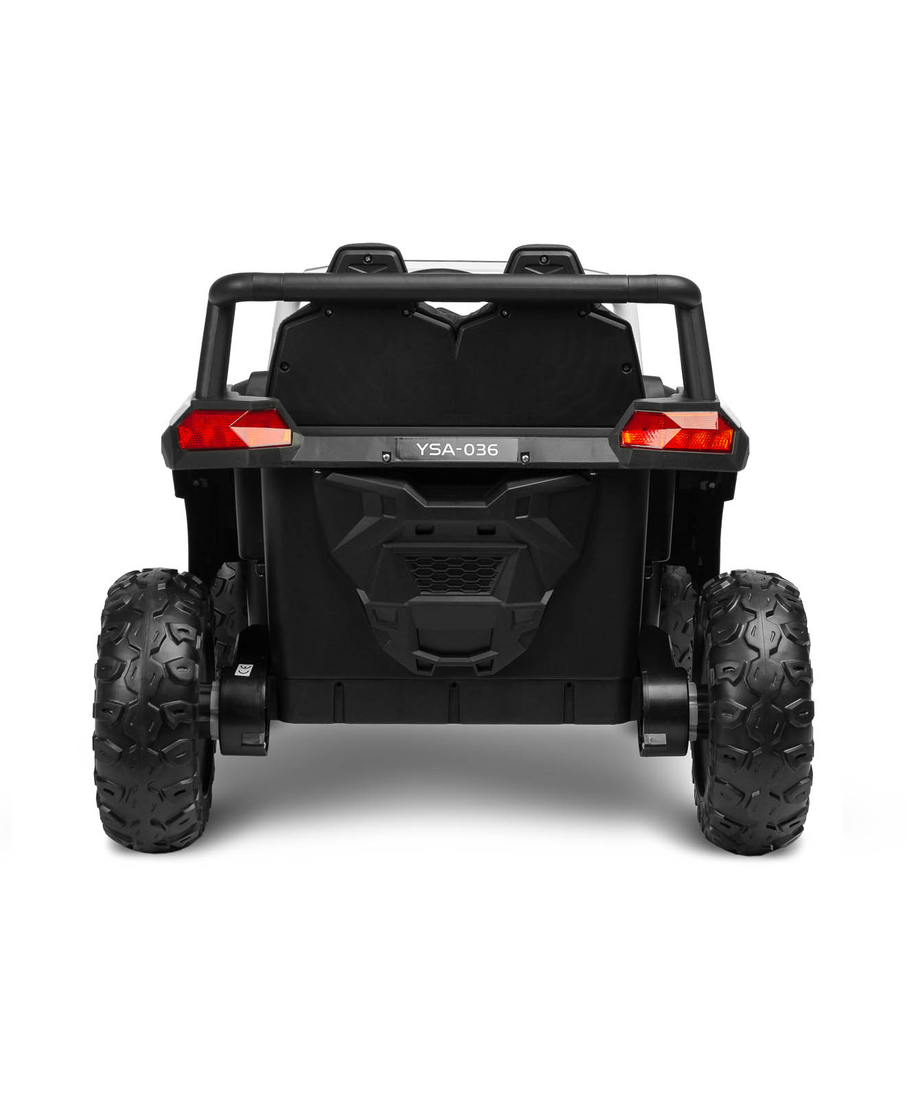 Komfortową jazdę zapewnia szereg funkcji: tylne amortyzatory, komfortowe siedzenie pokryte ekoskórą, pasy bezpieczeństwa zapinane w pasie, płynny start oraz automatyczny hamulec. Pojazd posiada też liczne elementy dodające radości, takie jak otwierane drzwi, multimedialny panel z bluetooth i podnoszoną maskę. Zasilany jest mocnym akumulatorem 12V/10Ah, co gwarantuje długotrwałą zabawę dla młodych kierowców.