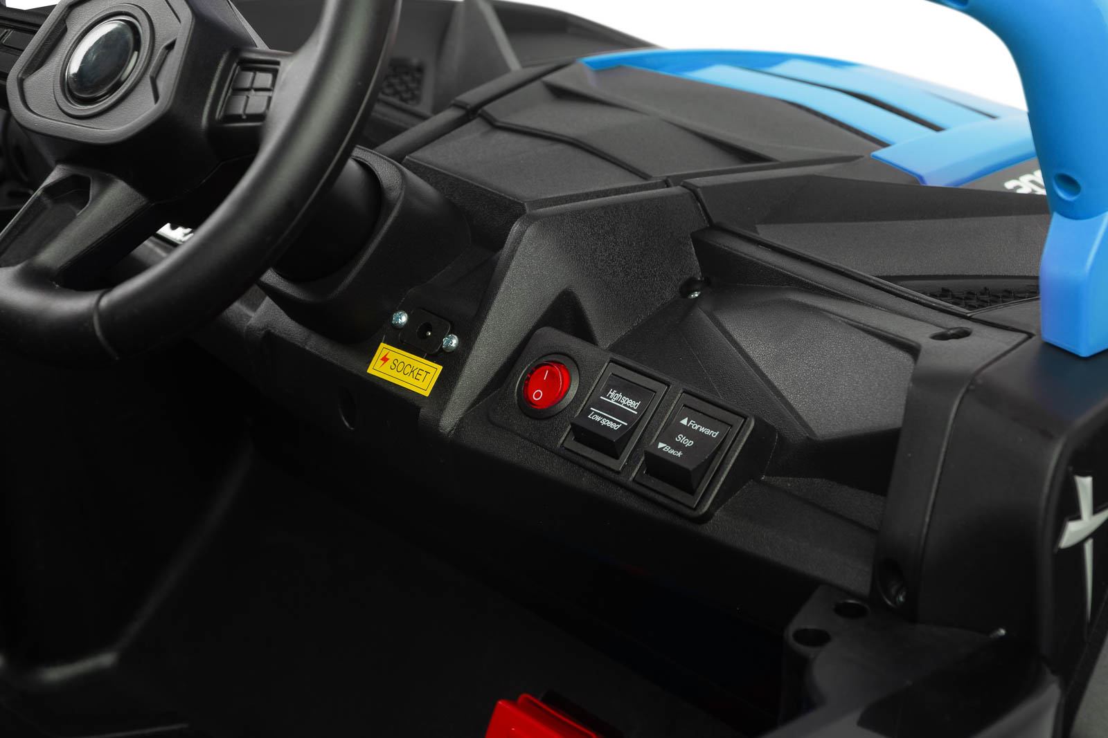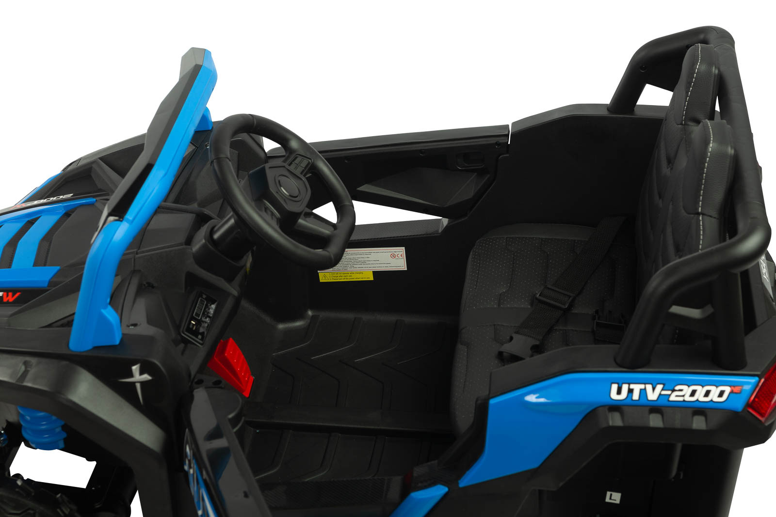 Komfortową jazdę zapewnia szereg funkcji: tylne amortyzatory, komfortowe siedzenie pokryte ekoskórą, pasy bezpieczeństwa zapinane w pasie, płynny start oraz automatyczny hamulec. Pojazd posiada też liczne elementy dodające radości, takie jak otwierane drzwi, multimedialny panel z bluetooth i podnoszoną maskę. Zasilany jest mocnym akumulatorem 12V/10Ah, co gwarantuje długotrwałą zabawę dla młodych kierowców.