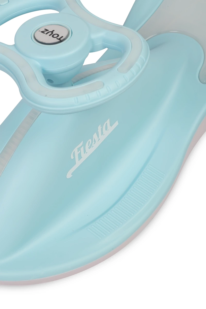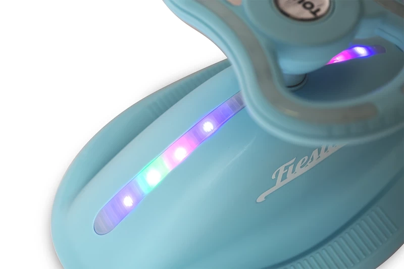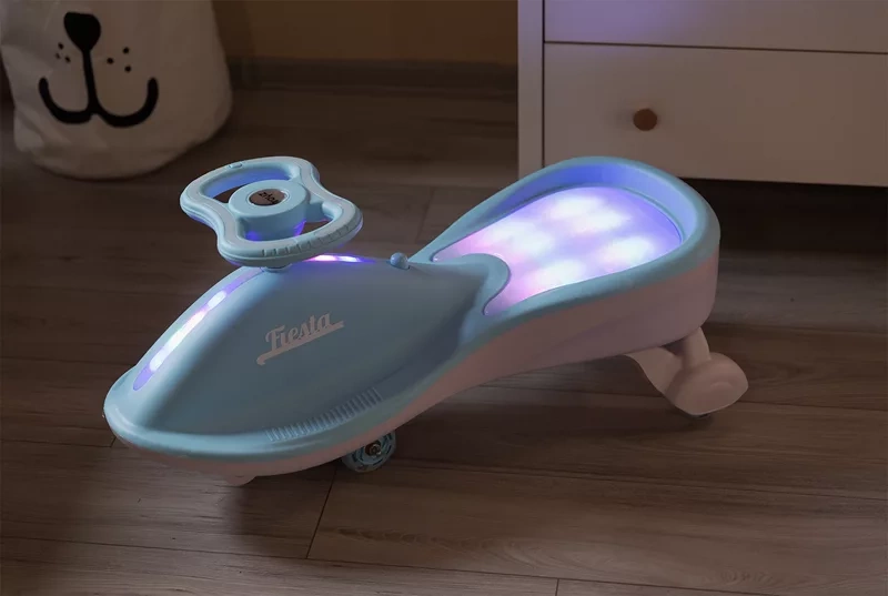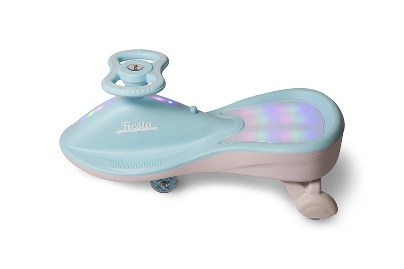 Fiesta to jeździk grawitacyjny bogato wyposażony w kolorowe światełka, które zapewniają dodatkowe atrakcje dziecku. Poruszanie się nim polega na ruszaniu naprzemiennie kierownicą. Naciskając odpowiednie przyciski dziecko uruchamia zachwycającą feerię świateł i wesołych melodii, a przy osiągnięciu odpowiedniej prędkości świecą się również kółka. Fiestę można używać podczas zabaw w domu i na zewnątrz. Jeździk może być używany przez dzieci już od 3 roku. Maksymalne obciążenie to 100 kg, więc Fiesta idealnie nadaje się do rodzinnych wyścigów.