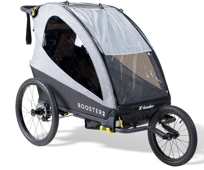 - X-lander Booster 2 – podwójna przyczepka rowerowa 3w1 z hamulcem tarczowym. Wózek spacerowy, biegowy i rowerowy w jednym. Komfortowe siedziska, wentylacja, odblaski, bezpieczeństwo i łatwy montaż.